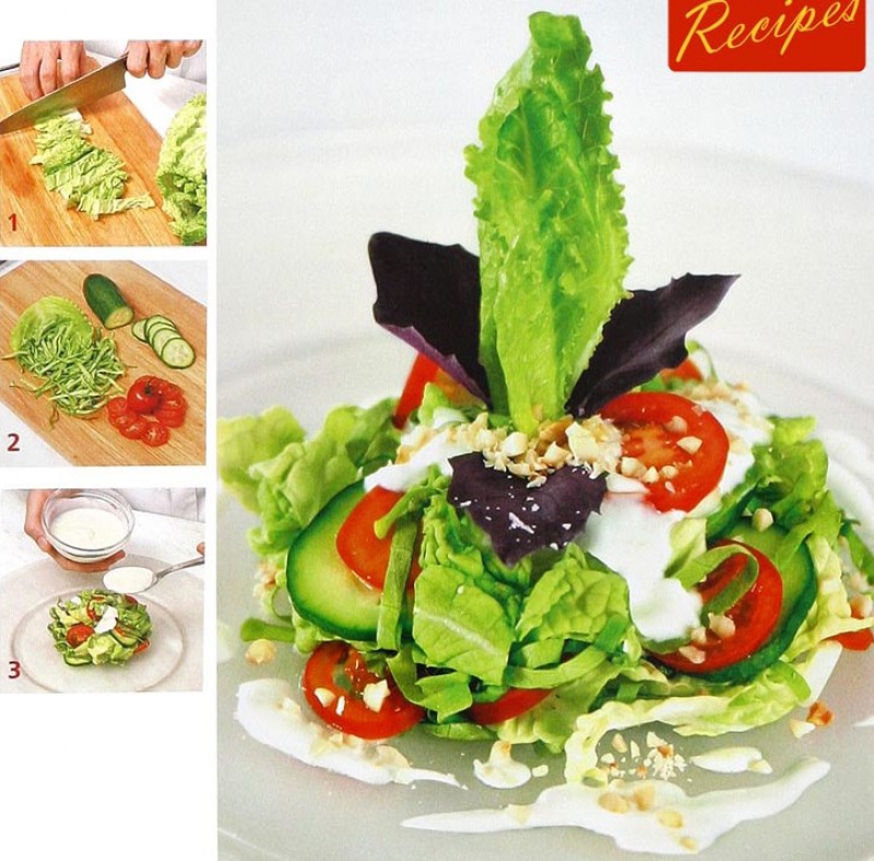 - During serving sprinkle with nuts and complete salad with greens in your taste.