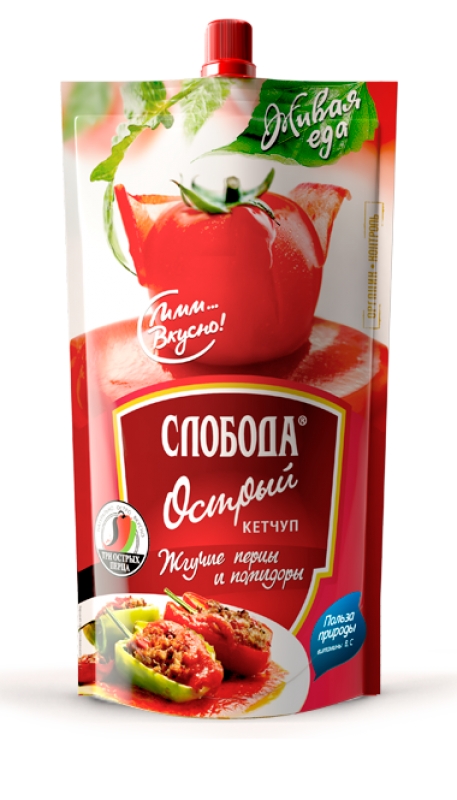 Spicy Ketchup "Sloboda" will give you an opportunity to discover the taste of usual foods in a new way. Your favorite dishes will sound absolutely different if you add the energetic spiciness of a red and black pepper , a rich aroma of white pepper and clove which contains this hot sauce.