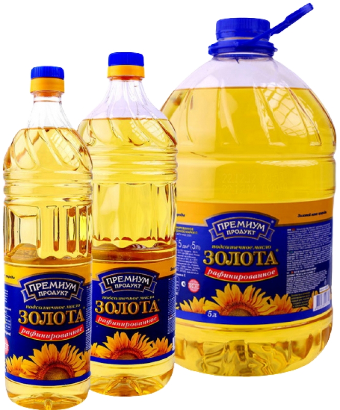 Filtered Zolota oil is presented in containers of different sizes for consumers’ convenience.
